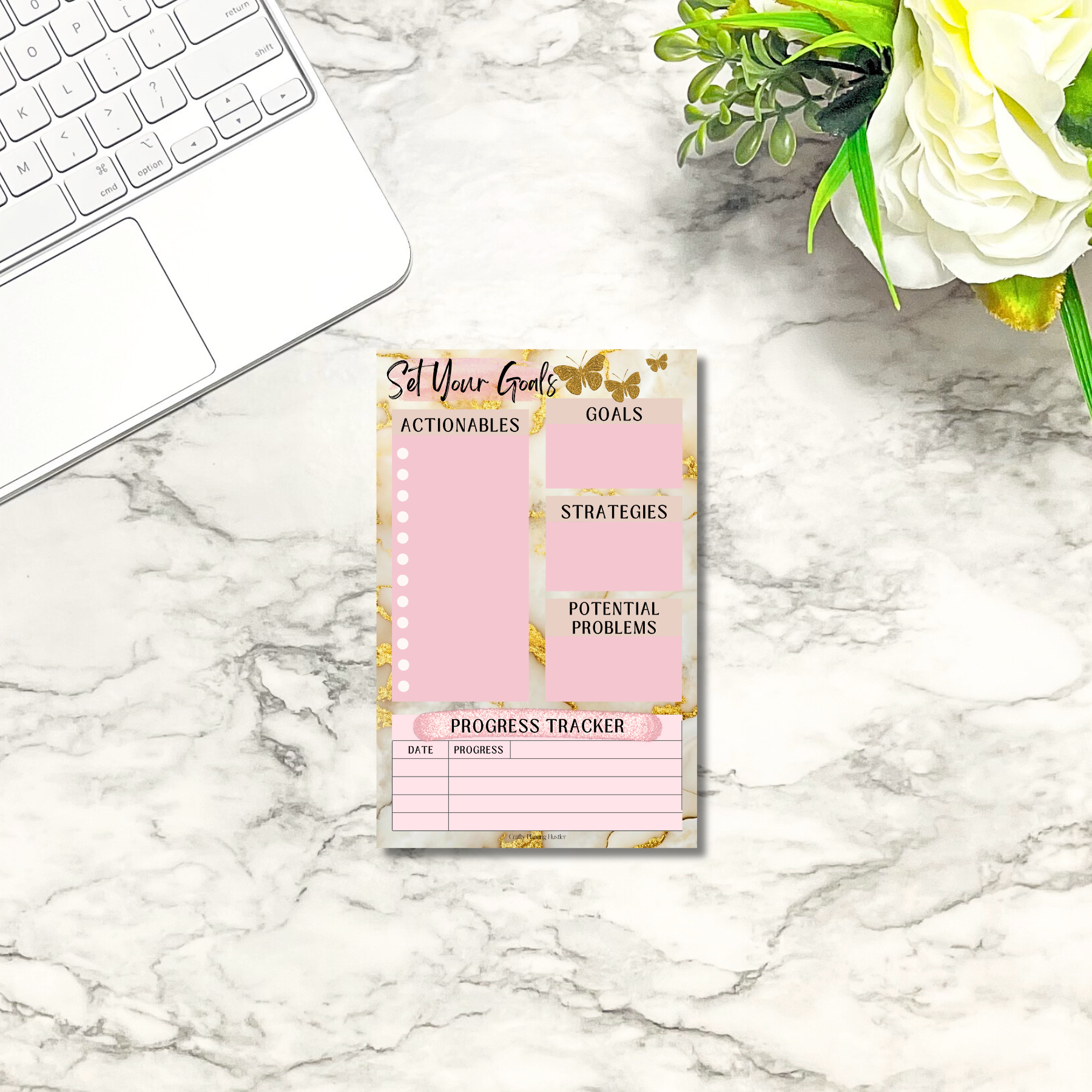 This glam butterfly-themed page is perfect for breaking big dreams into actionable steps. Set your goal, outline strategies, prep for potential problems, and track your progress all in one place.